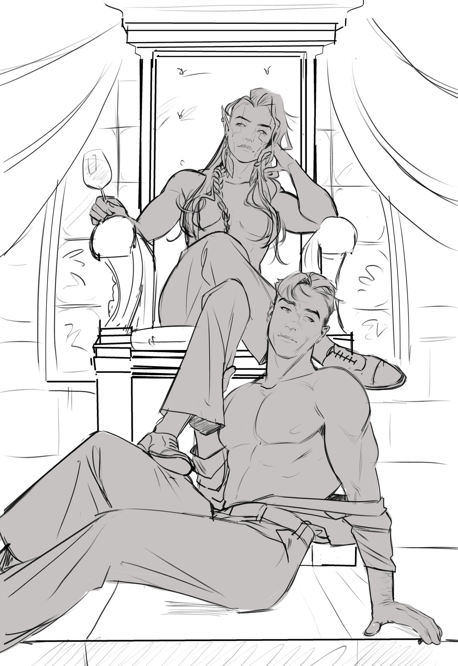 6. I will start working on your piece when I have received the money! I will send you the sketch usually within 14 days and you can voice your opinions at this stage (first revision). The next revision will be the basecolor phase, when you can tweak the colors.